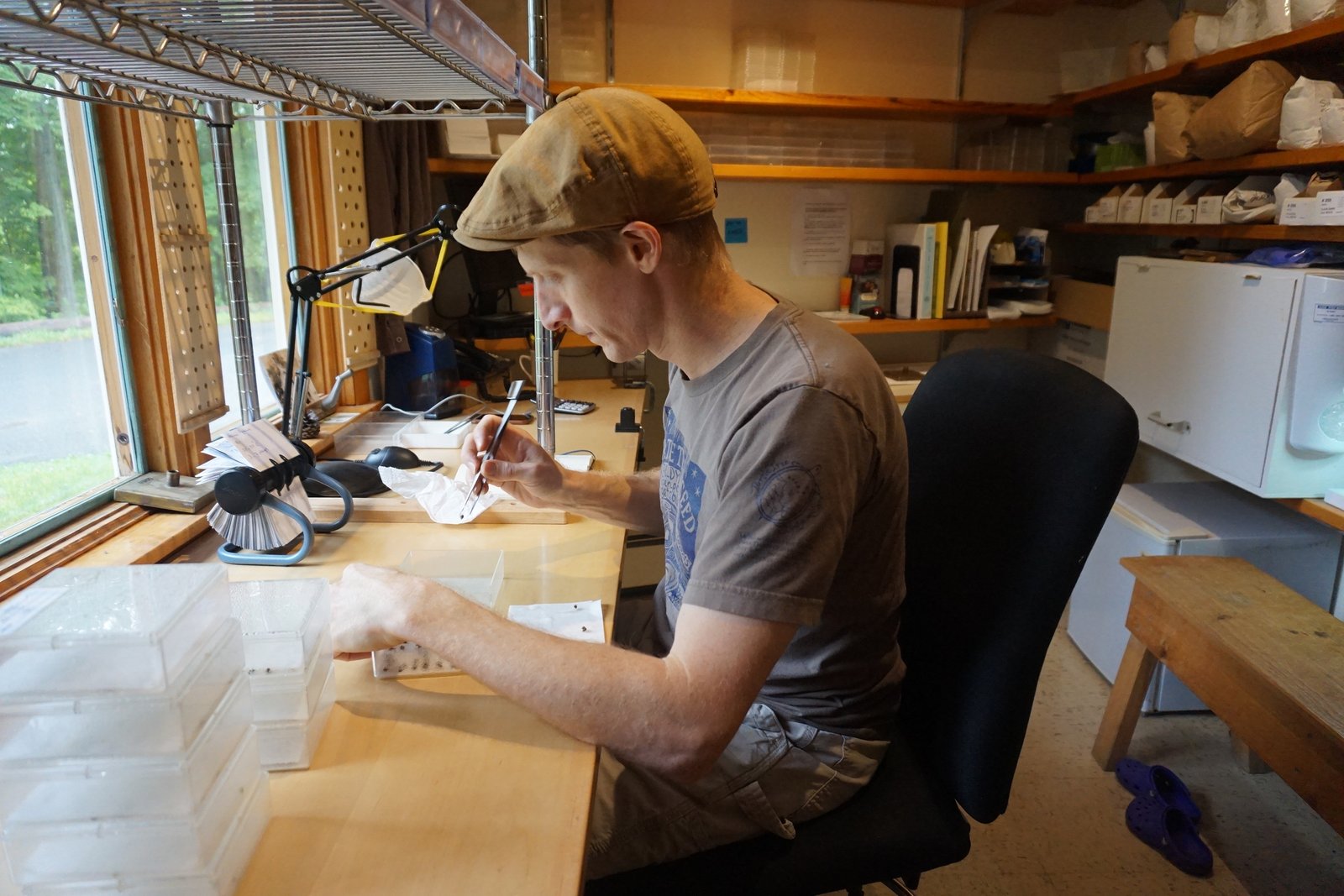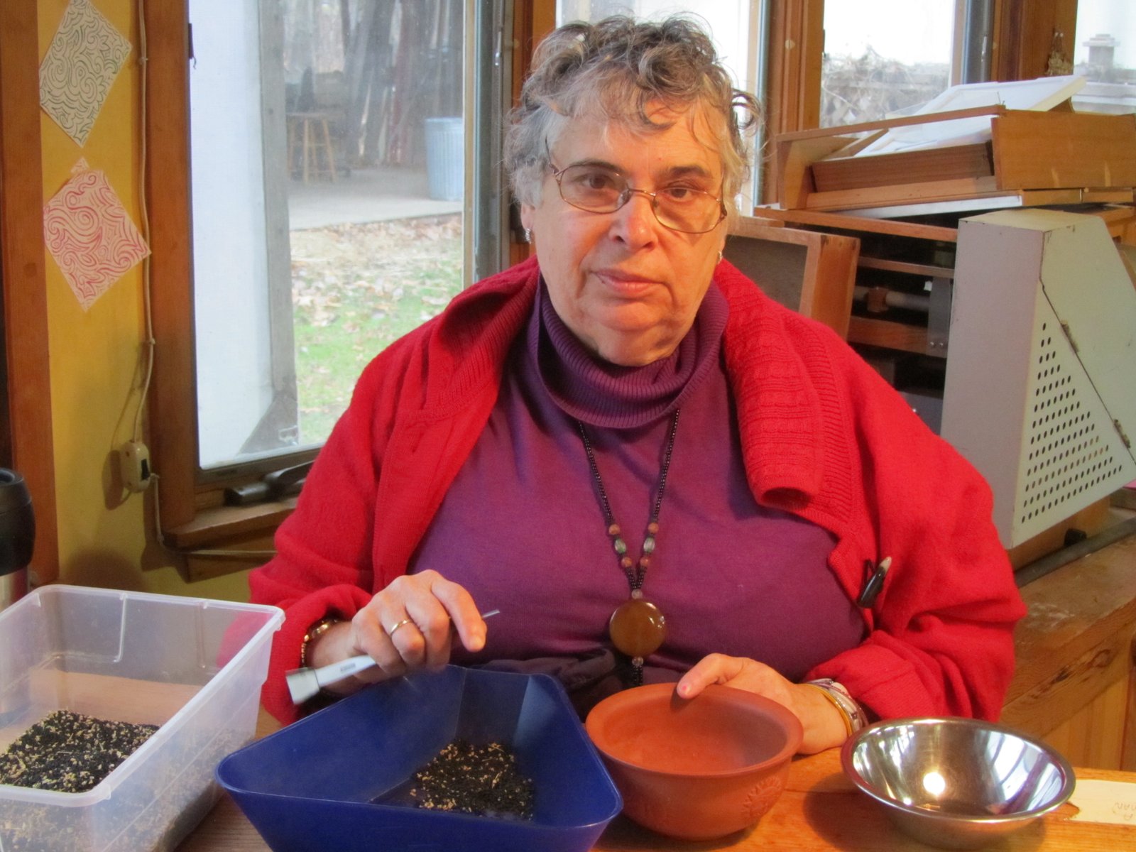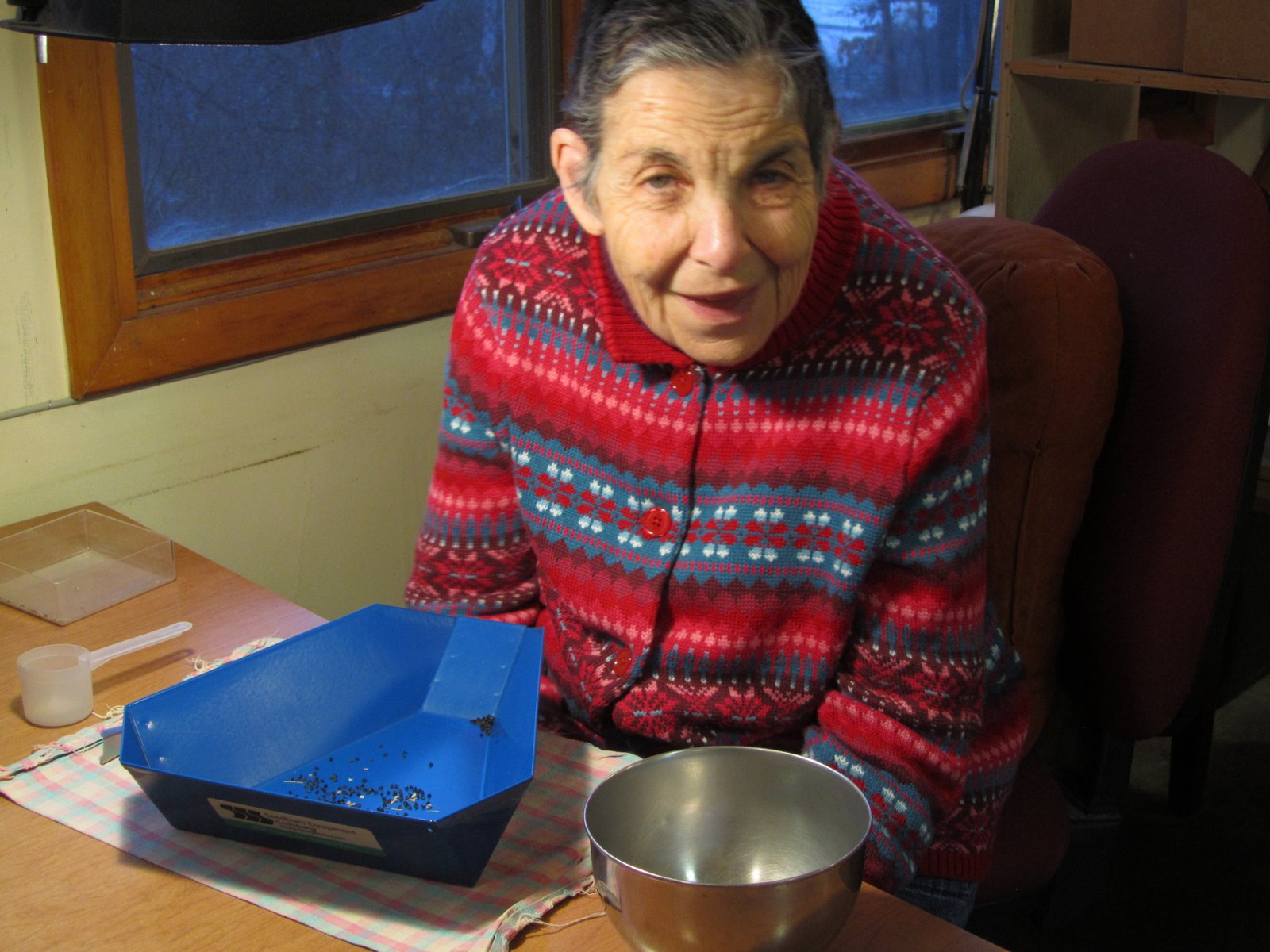 Kelly works at Turtle Tree two mornings a week, and enjoys the peacefulness of seed cleaning.