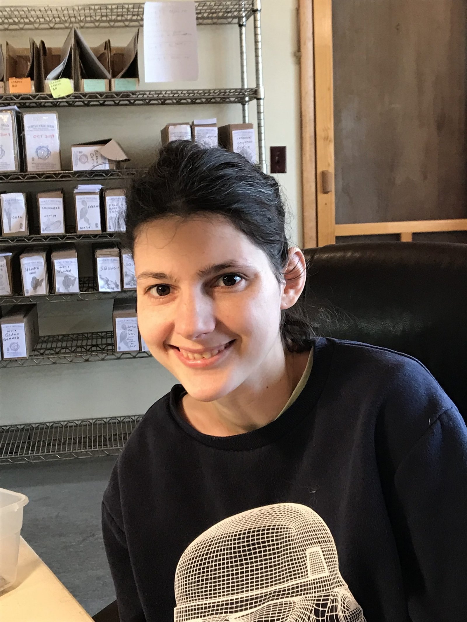 Mishka worked at Turtle Tree in the afternoons. She enjoys seed cleaning, making potting mix for our seedlings, and assisting with threshing. Mishka joined us five years ago.
