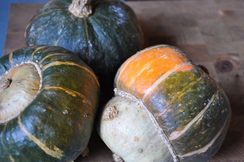 (C. maxima) Storage type. When it is baked it has golden melt-in-your-mouth pudding-like flesh and green skin. Round with small gray “button” on the end of the fruit. 5-6 in. diameter.