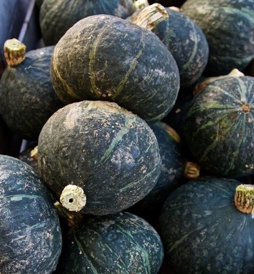 Certified Biodynamic and Organic (C. maxima) Kabocha-type dark green flat-round buttercup size fruits with dark green skin but without any button which is sometimes a characteristic of buttercup types. Very dry and sweet orange flesh. Bred by Johnny’s Selected Seeds. ~145 seeds/oz