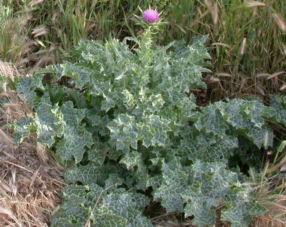 (Silybum marianum) Seeds, fruits, and leaves can all be used medicinally although the seeds are most often used. This is a tonic herb known for its ability to stimulate the growth of new liver cells and is used for those suffering from a spectrum of liver disorders. A preventative, this prickly plant is used to support the adrenals and strengthen the immune system. Grows well in most soils. Self seeds if not deadheaded. Leaves are vibrant green with ruffled edges and a distinctive white mottling. Very decorative. Can grow up to five feet tall with large flowers covered in tiny fuchsia florets.