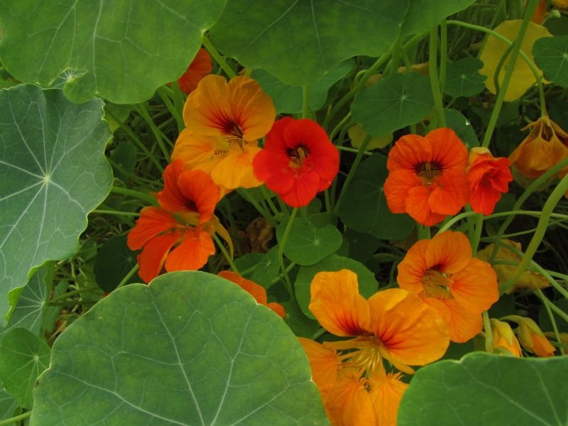 Nasturtium is a wonderful, cress-flavored edible flower. Among its many uses, two of our favorites are: Gently and finely chop a handful of nasturtiums flowers and one or two tender leaves. Mix with softened butter and a little bit of lemon zest. This mixture can be put into a butter mold or gently shaped then chilled for a flavorful and very dainty and festive butter. The green nasturtium flower seeds can also be used for pickling, either on their own (if you have enough) or with other veggies as a cress-peppery accent.