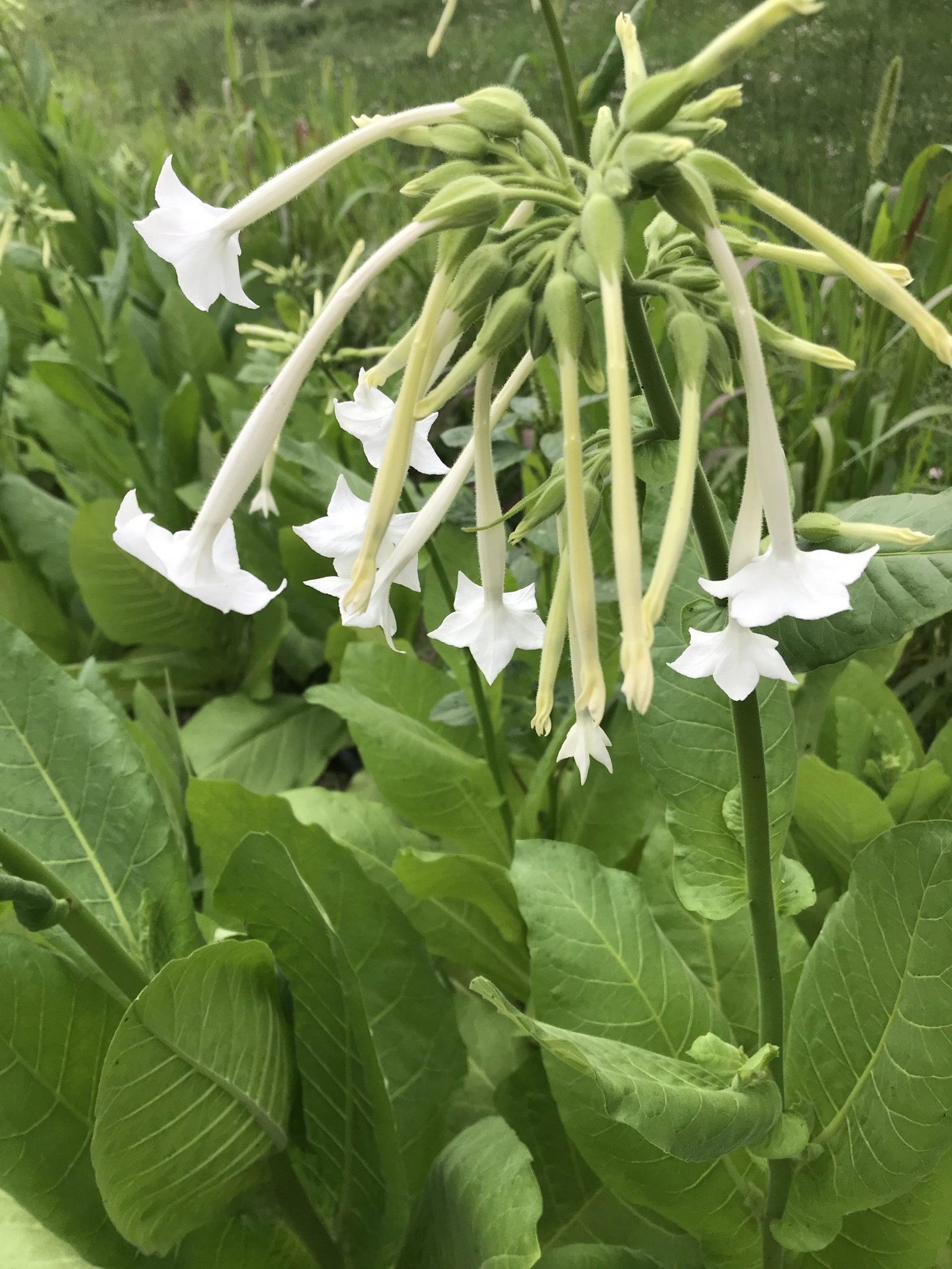 Annual. 5 ft. plants with tall spikes of long tubular white flowers that open at evening. Very fragrant. Start indoors and transplant after the danger of frost is over.