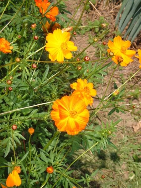 (Cosmos sulphureus) Annual. Bushy 30 in. plants. Masses of bright orange flowers that bloom early and continue until killing frost. Easy to collect and save seeds, or leave them on the plants to attract birds in the fall and winter.