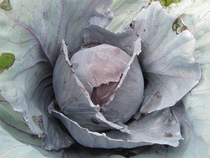 Bred by Dieter Bauer at Dottenfelderhof in Germany. Deep-burgundy red medium-large heads with short stems. Medium-storage cabbage. Great flavor for raw eating, excellent color and flavor when cooked.