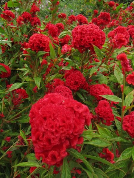 Plant scarlet cockscomb flower seeds 8-10″ apart