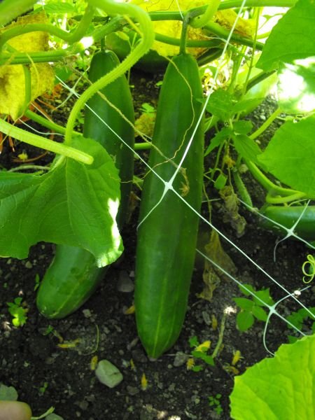 Water: Consistent watering; 1″ of water per week per plant when germinating; increase to a gallon per week once cucumbers start to form; inconsistent watering will create a bitter cucumber; avoid watering foliage in order to prevent leaf disease;