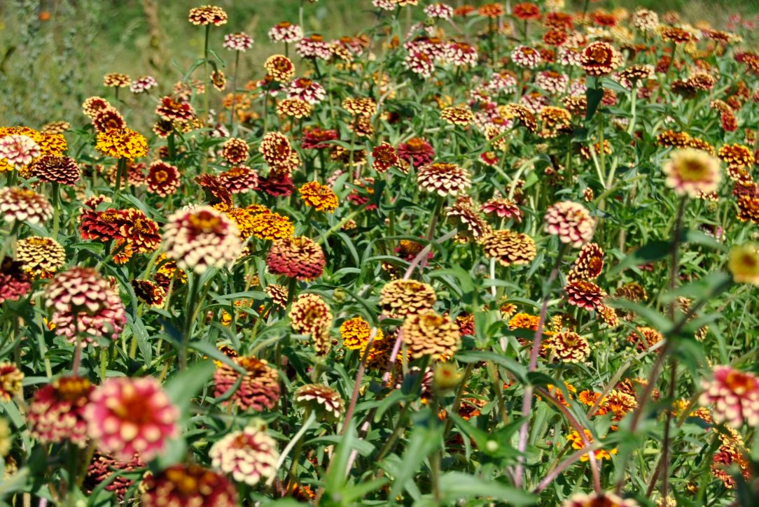 Annual. Gold, burgundy, pale yellow, and rust miniature bi-color blossoms will certainly grab your eye on this compact bush-type zinnia. Blooms from mid-summer until frost. Great for cutting. Excellent cut flower.